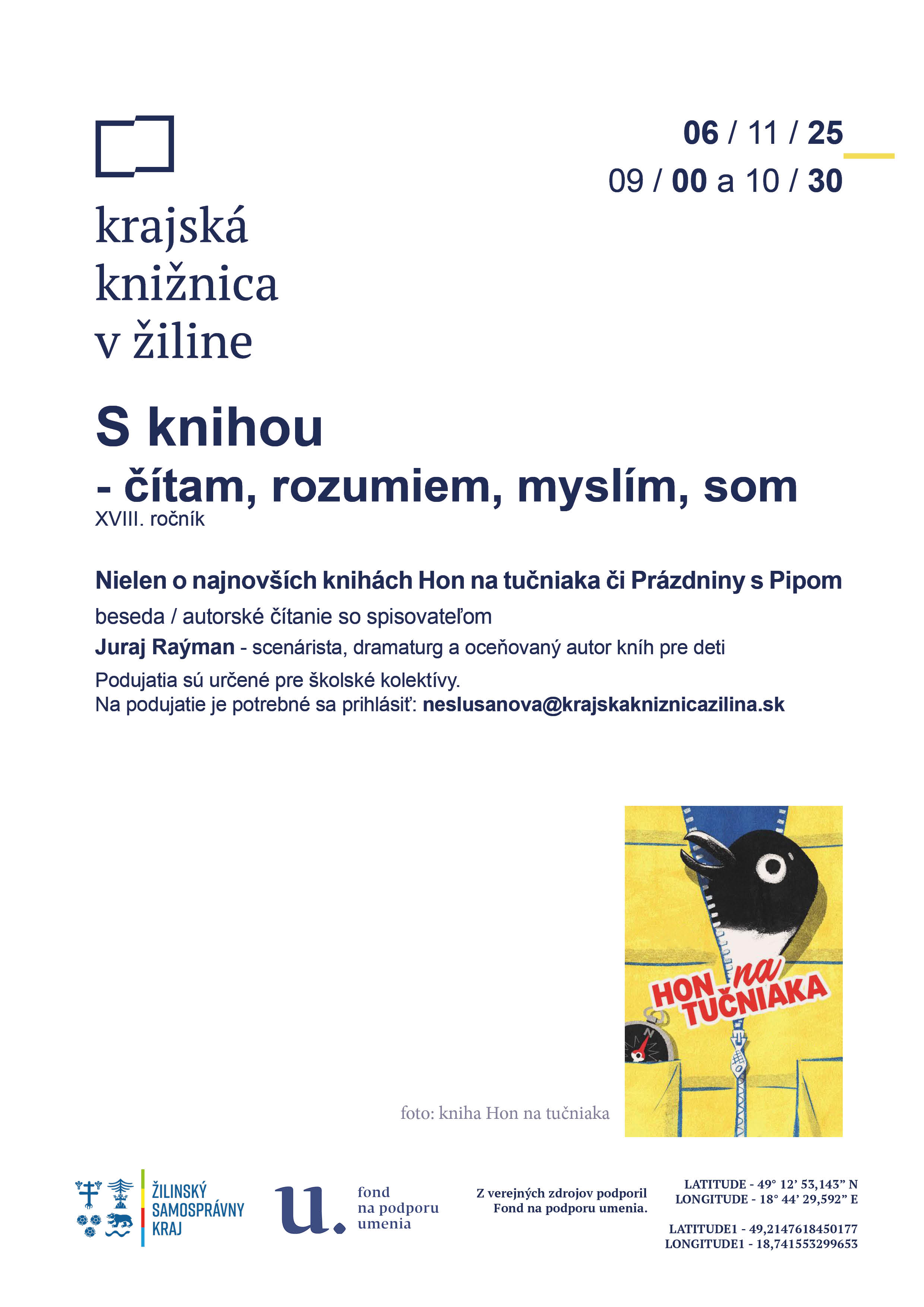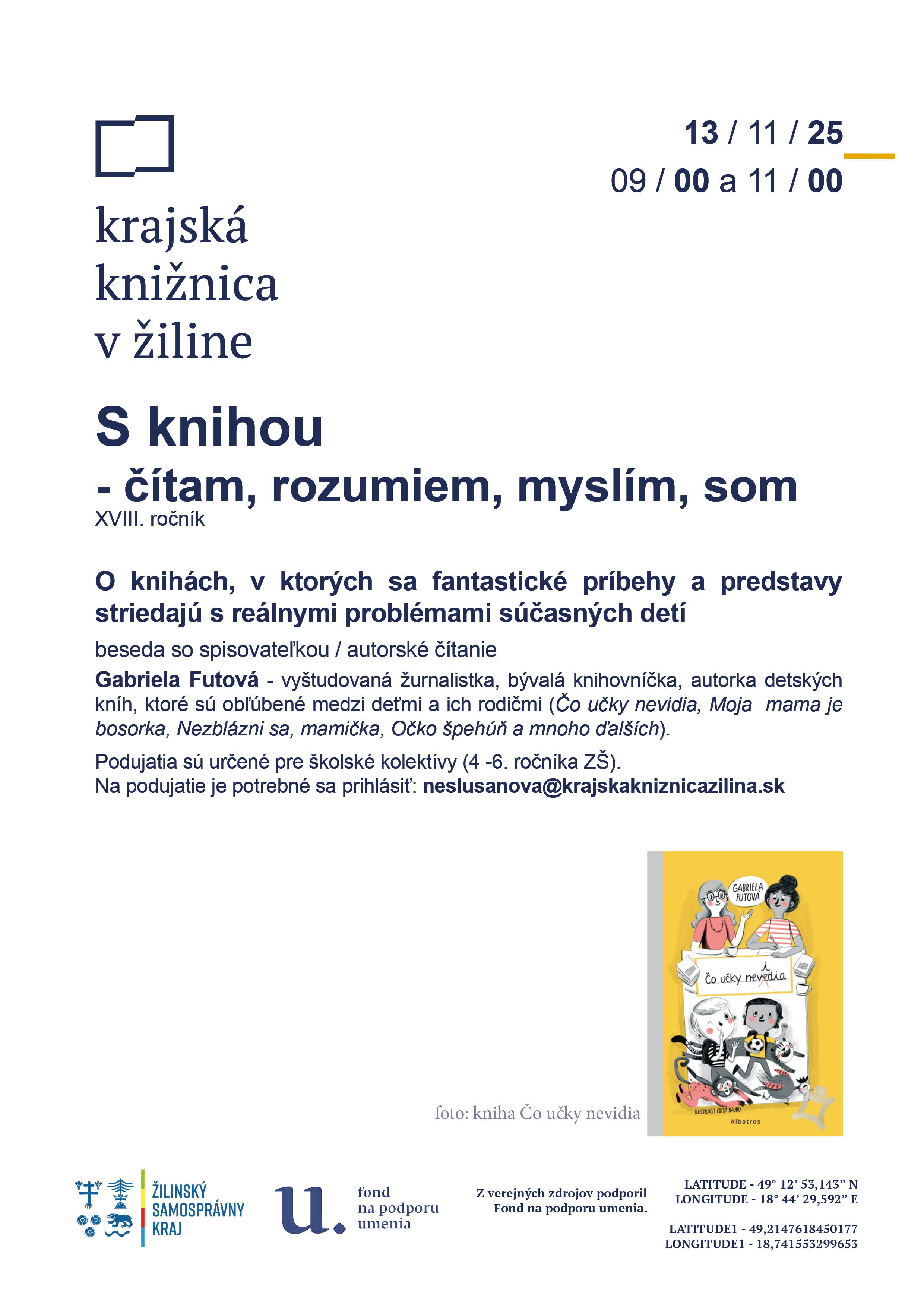 Podujatia sú určené pre školské kolektívy, je potrebné sa vopred prihlásiť – Mgr. Jana Neslušanová: neslusanova@krajskakniznicazilina.sk