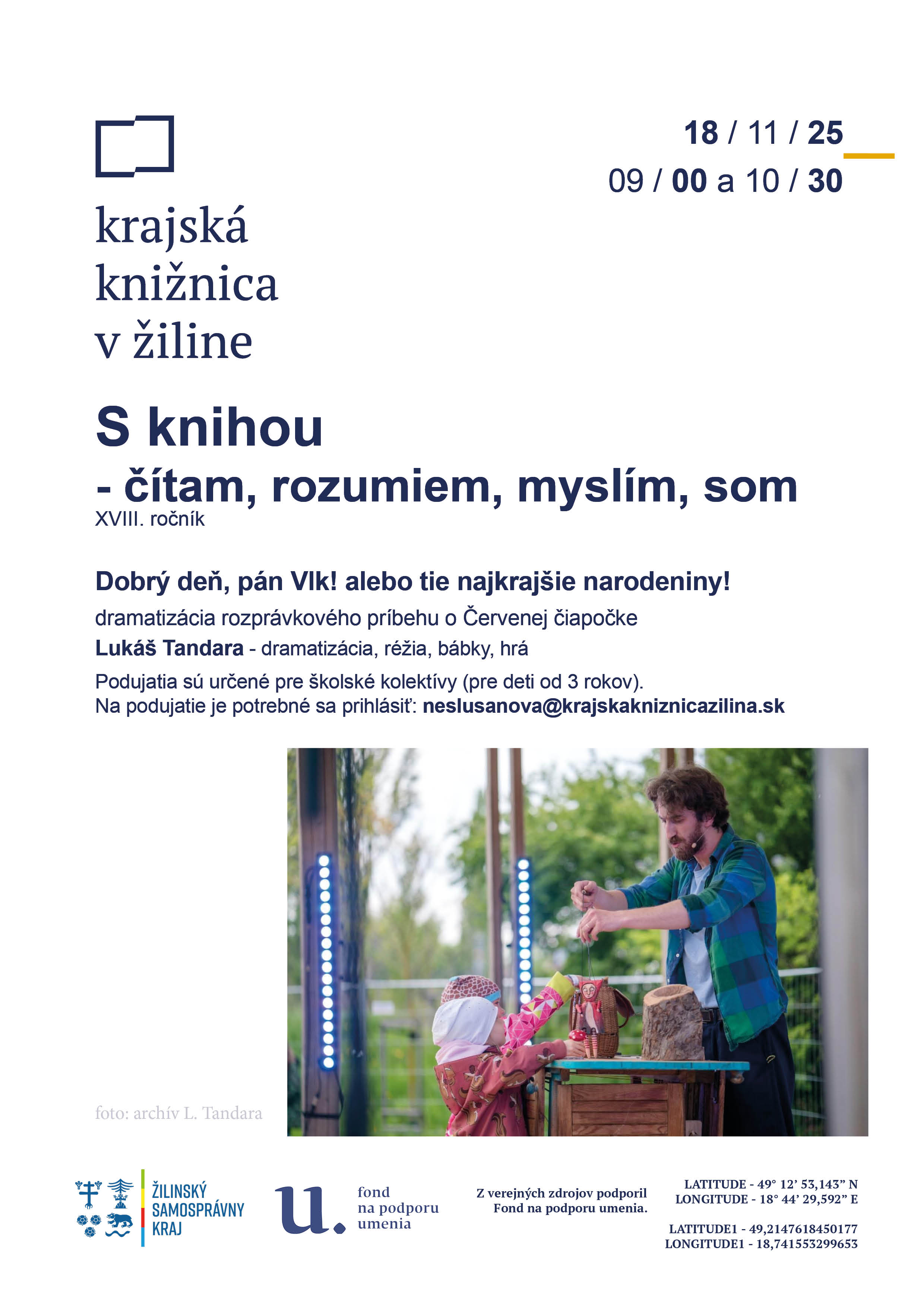 18.11.202 o 9:00 a 10:30 – Dobrý deň, pán Vlk! alebo tie najkrajšie narodeniny! (pre deti od 3 rokov)