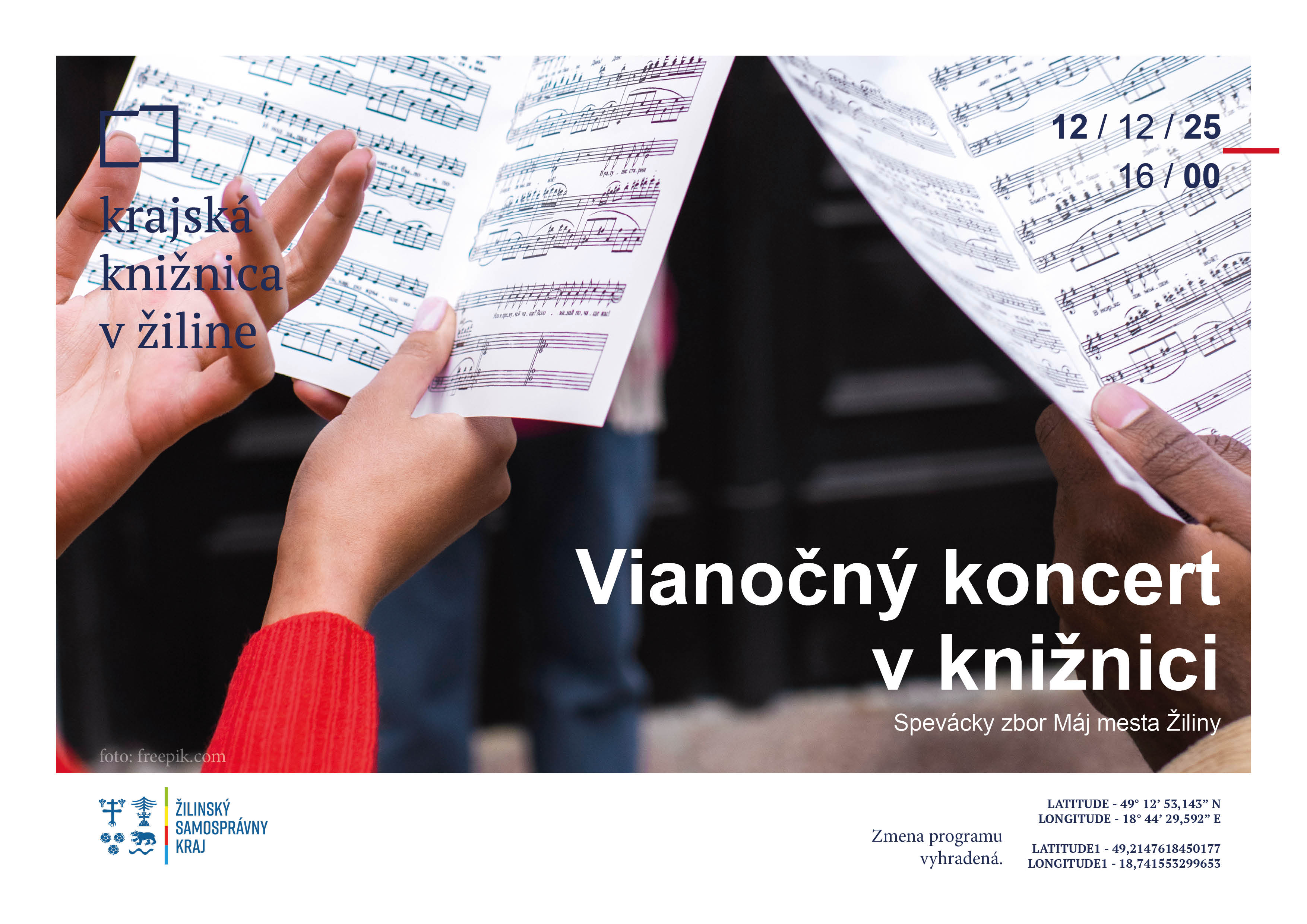 plagátSpevácky zbor Máj mesta Žiliny srdečne pozýva na vianočný koncert, ktorý sa uskutoční v piatok 12. decembra o 16:00 v Krajskej knižnici v Žiline. Zbor bol založený v roku 1984 pod hlavičkou Občianskeho výboru na Hlinách VI v Žiline. Zbor založil Cyril Poljak. Za dva roky od svojho vzniku získal zbor diplom na Súťaži miešaných zborov v Banskej Bystrici za III. Pásmo. Po tomto úspechu bol zbor uvedený pod PKO Žilina pod názvom Spevácky zbor Máj, ktorý nesie až dodnes. Počas svojho pôsobenia bol zbor ocenený u nás i v zahraničí. Od roku 1997 je zriaďovateľom zboru Máj Mestský úrad v Žiline a doteraz účinkuje pod hlavičkou Spevácky zbor Máj mesta Žiliny.