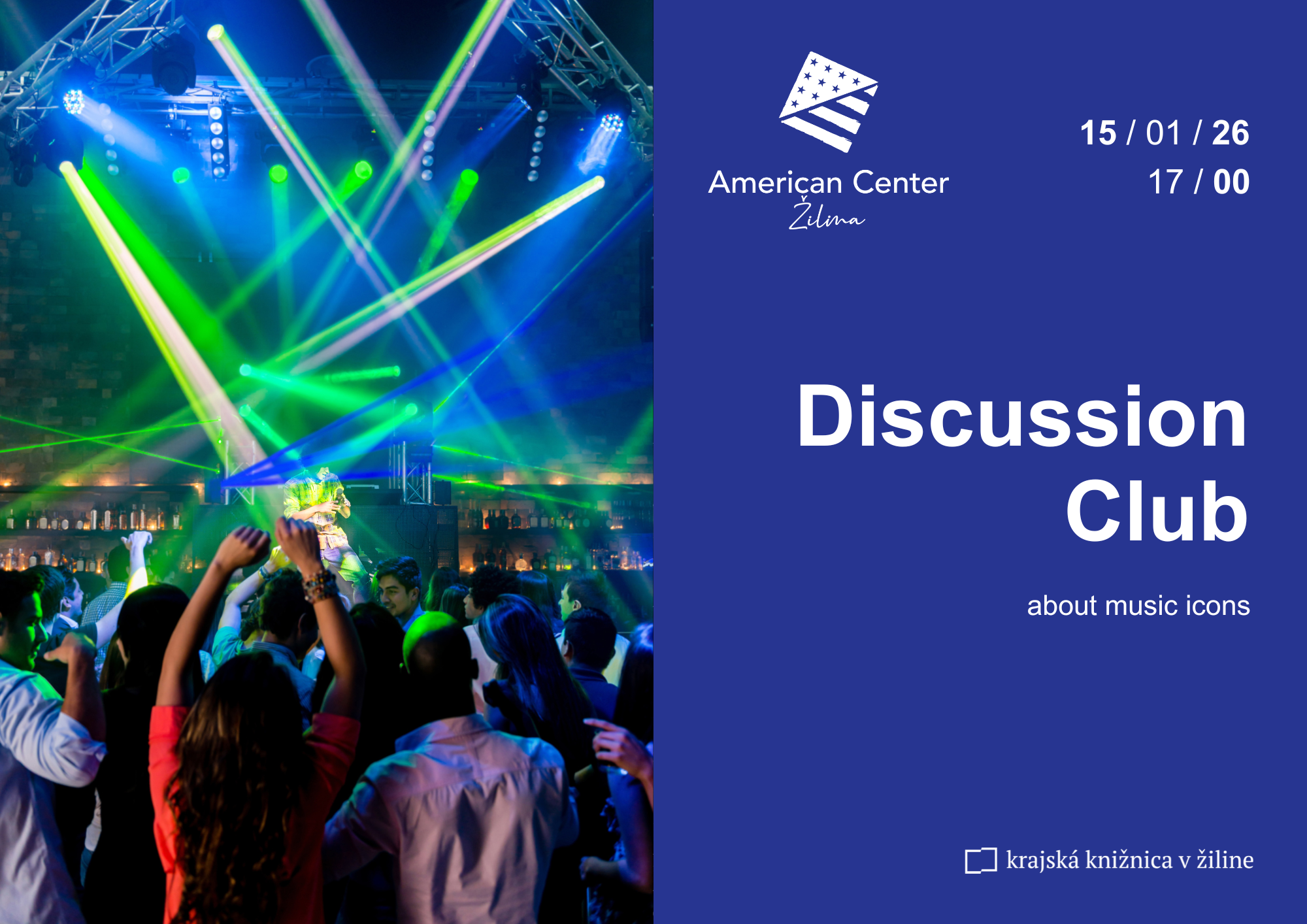 plagátMeetings of our discussion club will continue in the new year, we have planned two meetings for January: our topic for Thursday the 15th will be music icons and, on the 29th, we’ll be talking about the winter Olympics. Both club meetings will start at 5pm in American Center Žilina.