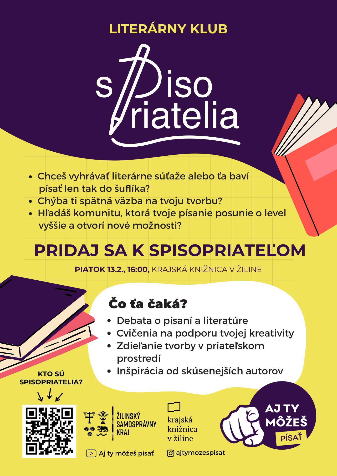 Pridaj sa k spisopriateľom vo štvrtok 13. februára o 16:00 v Krajskej knižnici v Žiline.