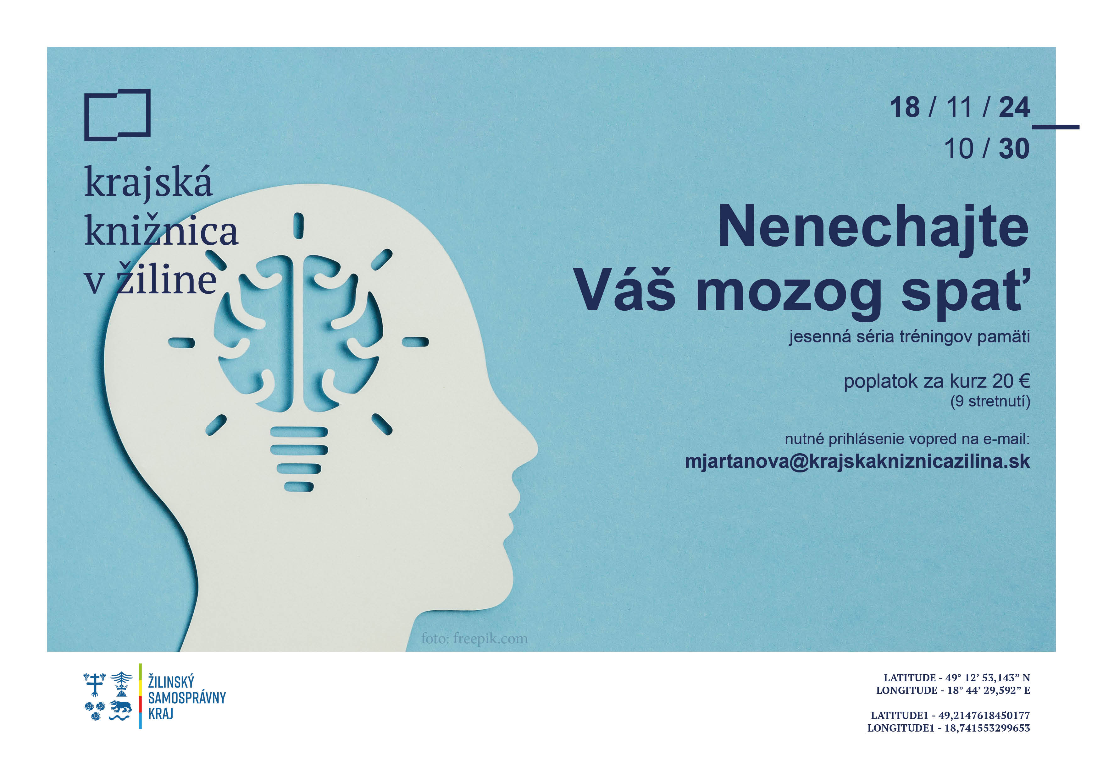 Na kurzy je potrebné sa vopred prihlásiť telefonicky 041/723 30 90 alebo e-mailom na pckurzy@krajskakniznicazilina.sk Podmienkou je platný čitateľský preukaz do Krajskej knižnice v Žiline. Podujatie bude realizované s finančnou podporou Mesta Žilina.
